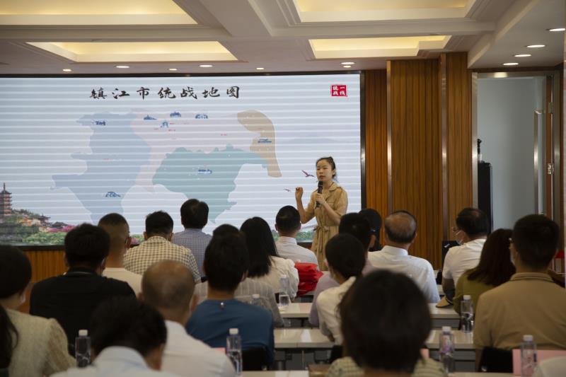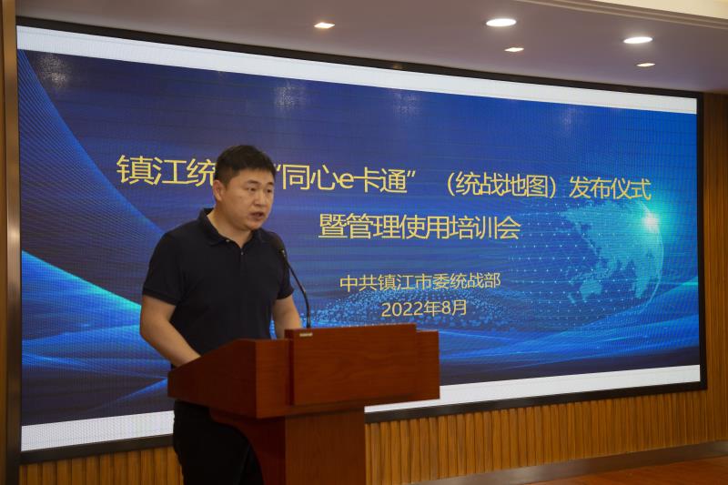 發(fā)布儀式現(xiàn)場,我公司副總陳蘇茗為鎮(zhèn)江市委統(tǒng)戰(zhàn)部及各轄市區(qū)統(tǒng)戰(zhàn)部、各民主黨派代表等與會人員講解鎮(zhèn)江統(tǒng)戰(zhàn)“同心e卡通”(統(tǒng)戰(zhàn)地圖)小程序使用方式及相關(guān)注意事項。